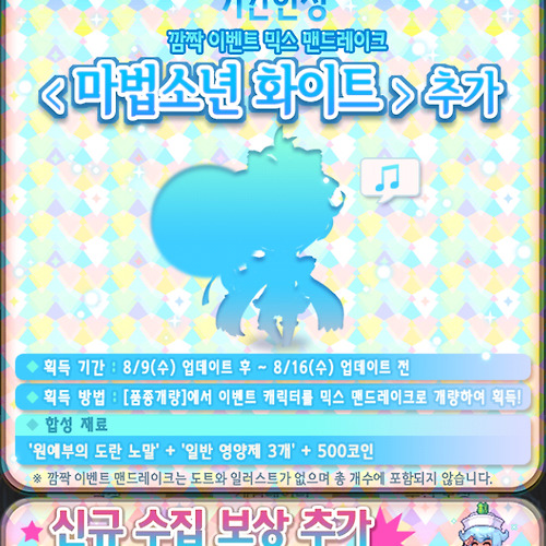 | [재배소년/업데이트] 가간한정 깜짝 이벤트 믹맨 1종 추가&신규 수집 보상 6종 추가! (0) | 2017.08.09 |