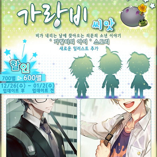 감성 퍼즐 게임 페티토 비스크 인형 이야기와 재배소년의 기간한정 콜라보 이벤트가 업뎃되었습니다! 이벤트는 12/26일 업데이트 전까지, 한정 믹맨 6종과 일러스트 1종을 얻을 수 있네요.