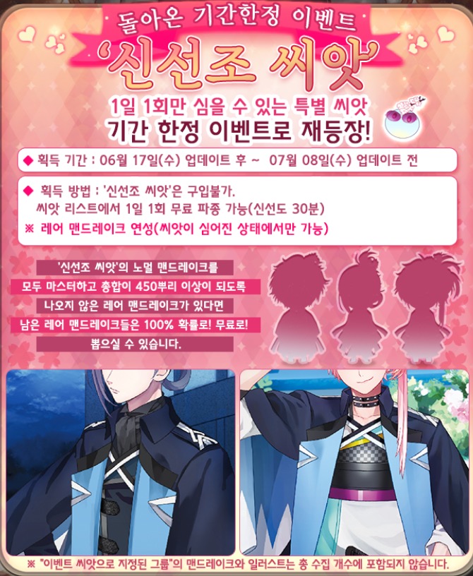 [재배소년/업데이트] 돌아온 기간한정 이벤트 신선조 씨앗 업뎃!